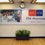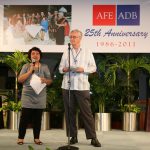 On Wednesday, 11 May, about 25 members visited a feeding program in Tondo for poor children funded by the ADB Staff Community Fund. In the evening, we gathered at the ADB Executive Dining Room for the farewell “Despedida” cocktail reception, with delightful entertainment from the ADB Chorale and the ADB Dance Guild and 2 beautiful songs by Andy Carlos accompanied on the piano by Edith Okada. It was also the occasion for a fun-filled exchange of gifts, and some energetic ballroom and line dancing, a fitting finish to the celebration of AFE’s first 25 years.