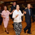 Among the non-golfers who remained in Manila, 16 joined an informative and insightful guided walking tour through Intramuros in the morning. That evening, members caught up with former colleagues and friends in spirited conversation at the welcoming “Bienvenida” cocktail reception in the ADB cafeteria. During the reception we were treated to ethnic dances by the ADB Dance Guild and a performance of Hanagasa Odori, a Japanese dance, by the “South Belles” from the AFE South Group. We also watched a brief video statement specially recorded for the occasion by President Kuroda who could not attend. Mrs. Kuroda, however, joined the festivities and greeted many members.