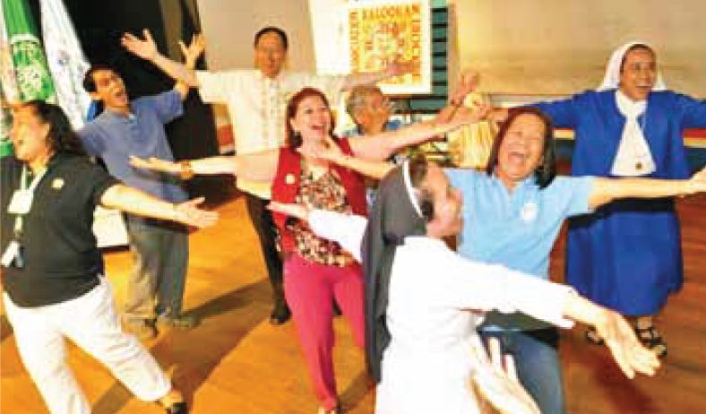 When I arrived at St. James Academy in Malabon on 21 October 2011, it was already full with 370 students, teachers, and school officials, including a few bishops and nuns. The Academy, founded by the Maryknoll Sisters, was celebrating its highly successful 85th Foundation Year. The sight of the excited participants instantly inspired me. I had been invited to the celebrations because some of the organizers are regular readers of my column, had received positive feedback from others who had experienced Laughter Yoga, and wanted to try it themselves.